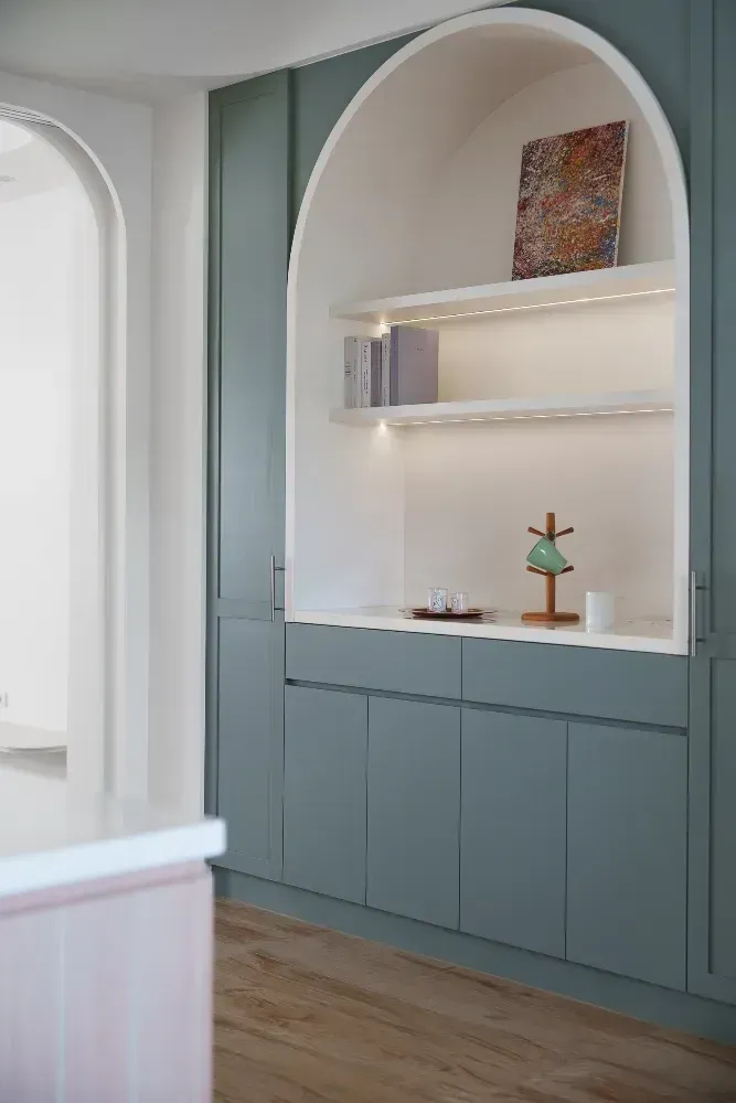 工程項目:系統櫃,木作造型,木作天花,鋁框門,人造石,厨具,玻璃和油漆等等。