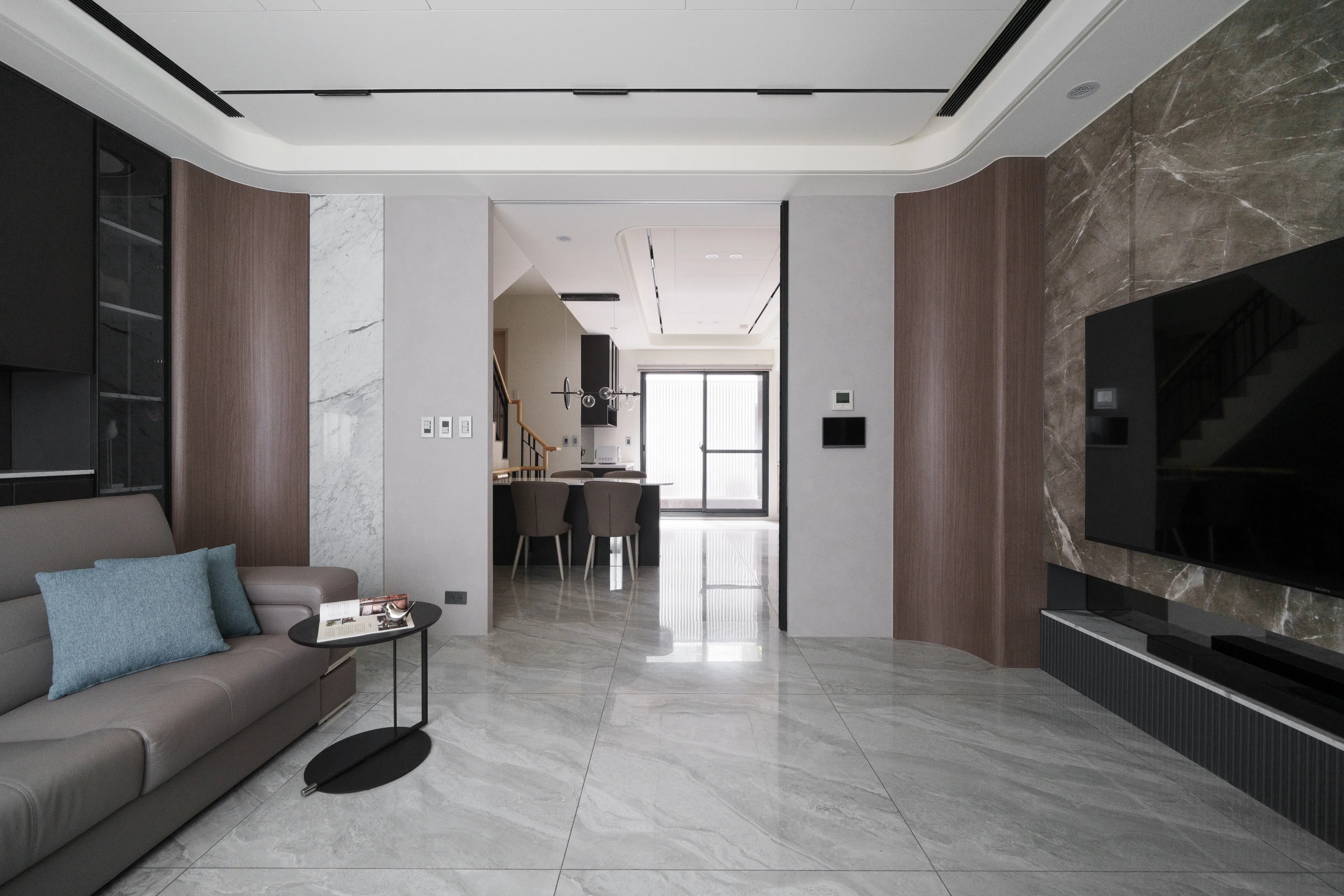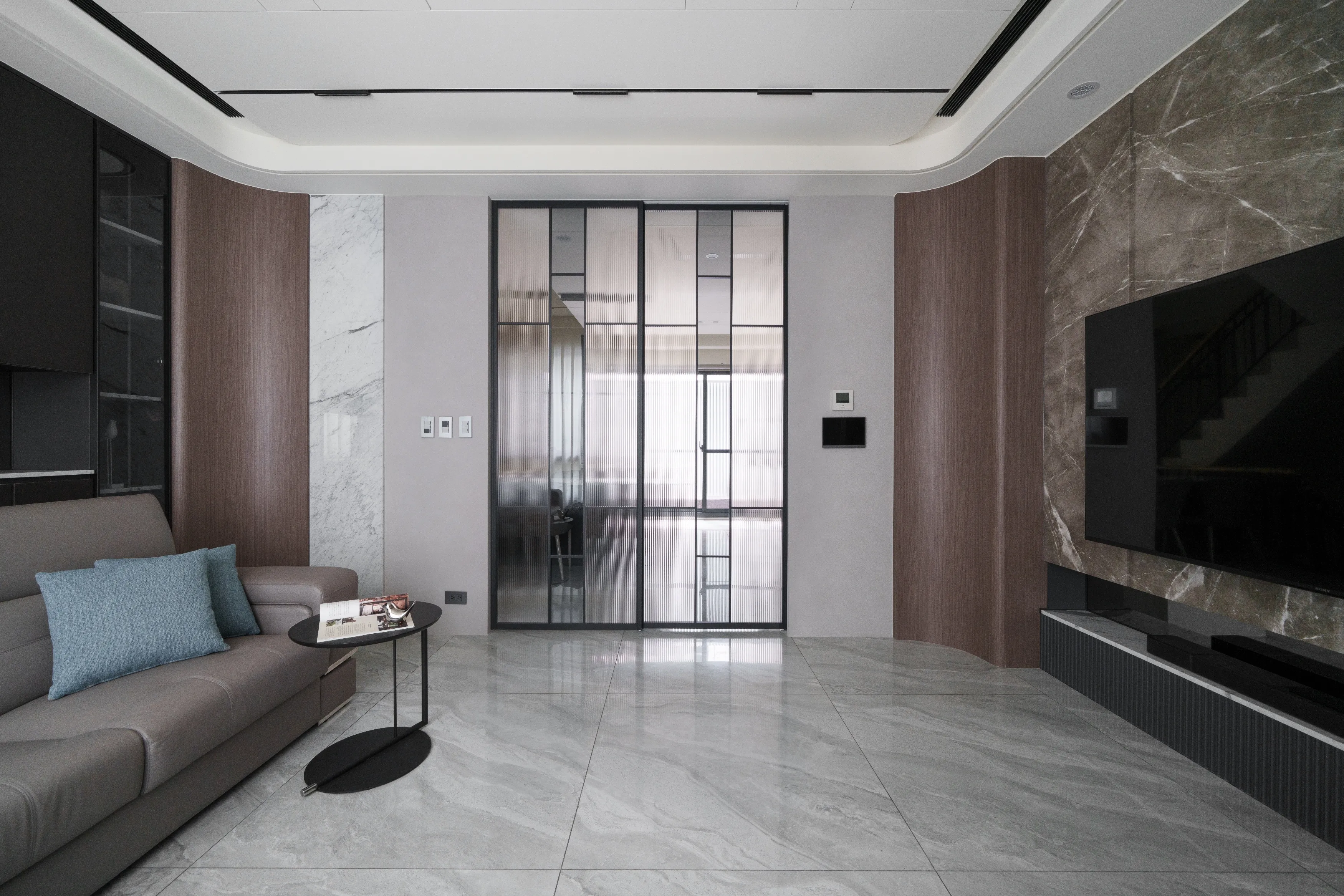 工程項目:大理石,系統櫃,木作造型,木作天花,玻璃,鋁框門和藝術塗料及跳色油漆,水電工程 等等。